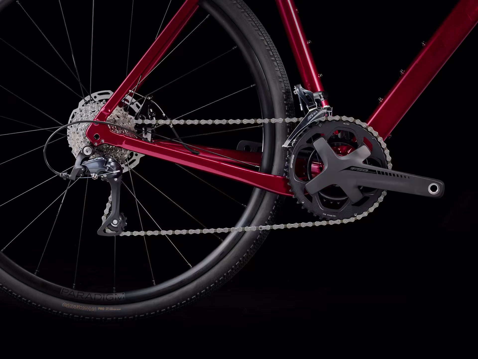 Met Bontrager Girona Pro 700x42c tubeless-ready banden, GR-lekbescherming en een compleet TLR-systeem inclusief sealant, rij je met meer grip, comfort en minder kans op lekrijden. De stevige Bontrager Switch steekassen en flat-mount schijfremmen met Tektro C550 mechanische remklauwen zorgen voor maximale controle onder alle omstandigheden.