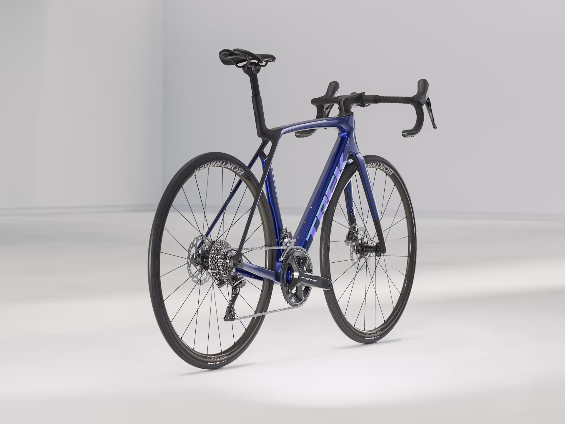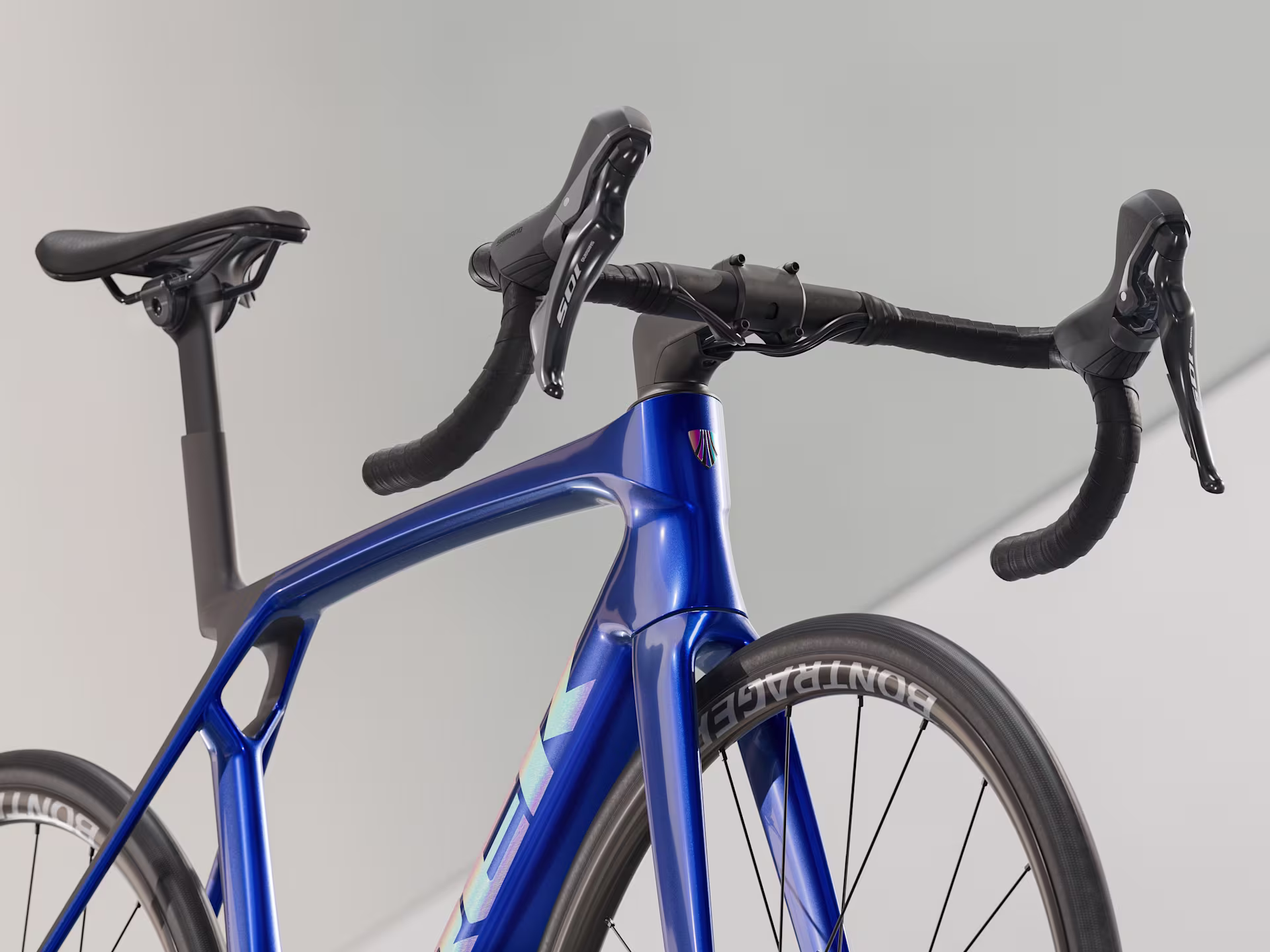 De Madone SL 5 maakt gebruik van Full System Foil buisvormen en een revolutionaire IsoFlow zitbuis, waardoor luchtweerstand wordt verminderd én trillingen worden gedempt. Resultaat: een fiets die snijdt door de wind én comfortabel blijft, zelfs op lange ritten.