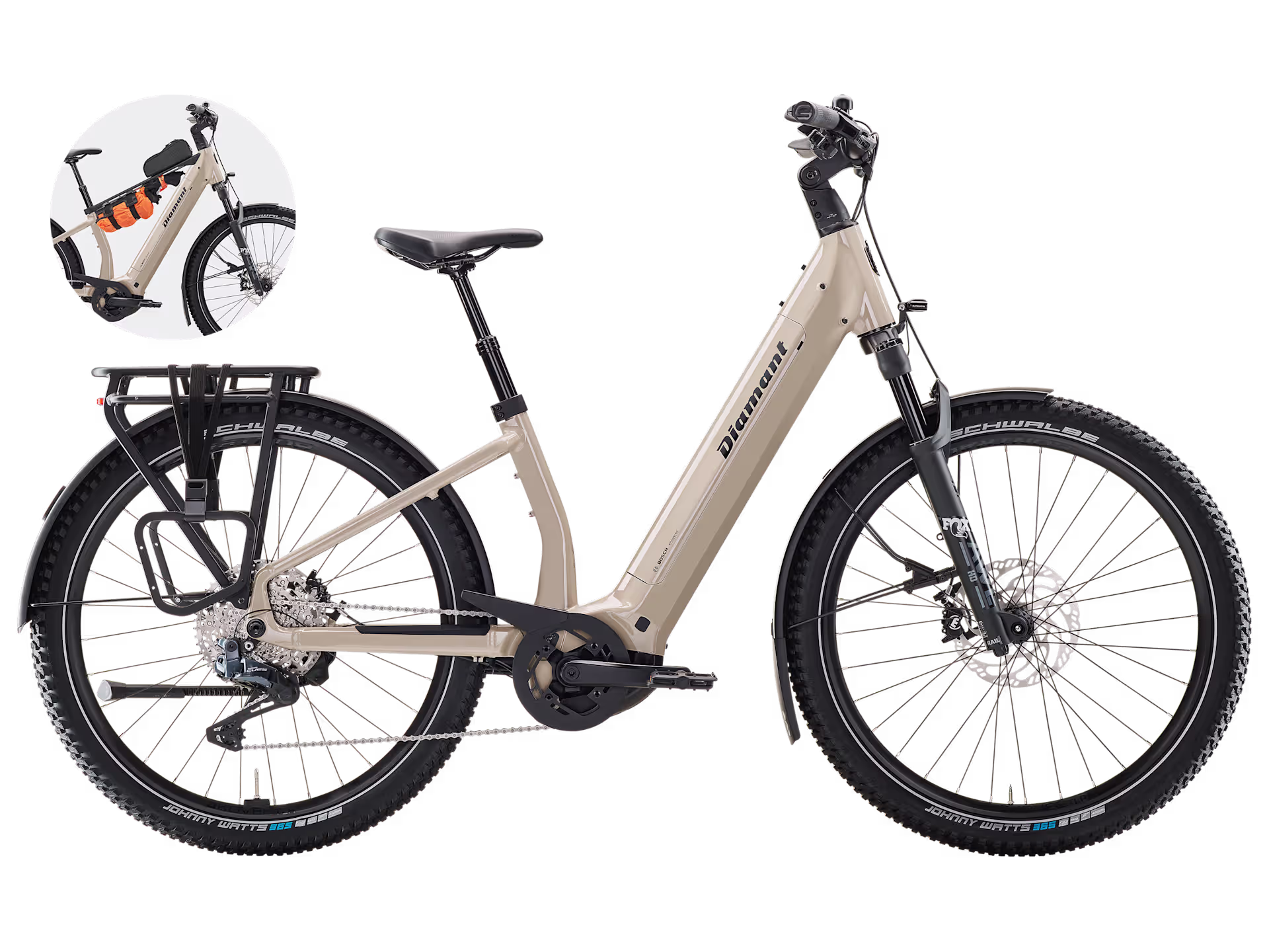De fiets is rijk uitgerust met hoogwaardige details zoals een geveerde dropper zadelpen, Supernova Starstream 500 lumen voorverlichting, en Spanninga achterlicht met geïntegreerd remlicht, wat veiligheid en zichtbaarheid naar een hoger niveau tilt.